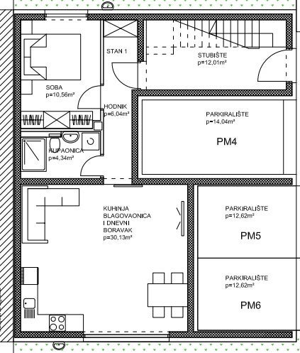 Stan S1 PRIZEMLJE - UKUPNA POVRŠINA: 60,58 m2